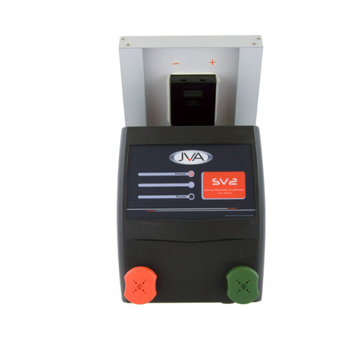 The JVA SV2 is a solar-powered electric fence Energizer. The JVA SV2 is ready to go straight out of the box. The SV2 is the perfect portable electric fence power solution. Its integrated design makes it ideal for strip grazing, no need to lug or replace flat batteries. The solar panel on the SV2 charges the inbuilt battery and the Energizer runs off the battery. The SV2 also packs enough punch to be great in small permanent electric fence setups.