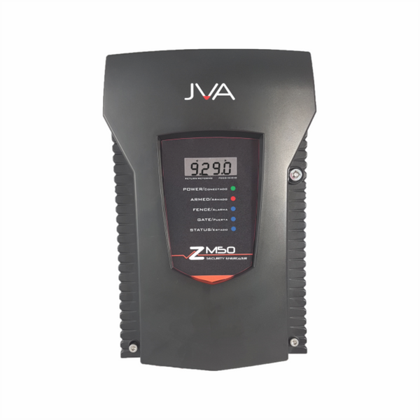 The JVA ZM50 is an advanced security electric fence monitoring system, enabling the partitioning of an electric security fence into 50 programmable sectors. This gives greater accuracy in detecting the locality of a fault on the fence line which in turn allows for quicker targeted responses and/or better camera positioning.