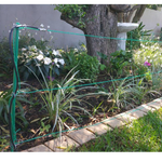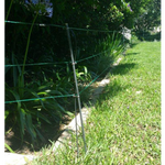 8mm 900mm non conductive fibre glass fence posts. Space them +/- 4m apart following the garden beds. Used with Post springs to thread your fence electrified poliwire through.