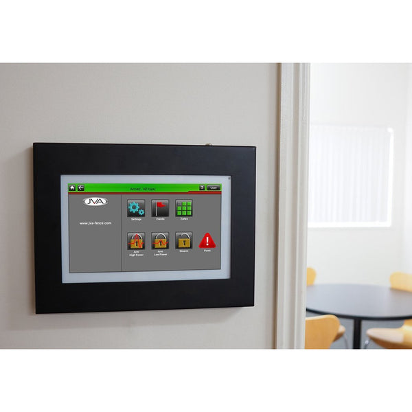 The JVA Touch Keypad is the most intuitive keypad for the setup, control and monitoring of all Z series security energizers and monitors. Get your site set-up quickly by programming your devices via the touch screen interface. Quickly arm or disarm all or individual zones via pin protected buttons. The fluid user interface is updated in real time providing peace of mind at a glance. The always persistent top bar keeps you informed of any alarms and displays a pulse animation in time with the energizers. Email notifications can be configured to alert you of every alarm as and when they occur. View the onboard log of each and every user authenticated action or alarm.